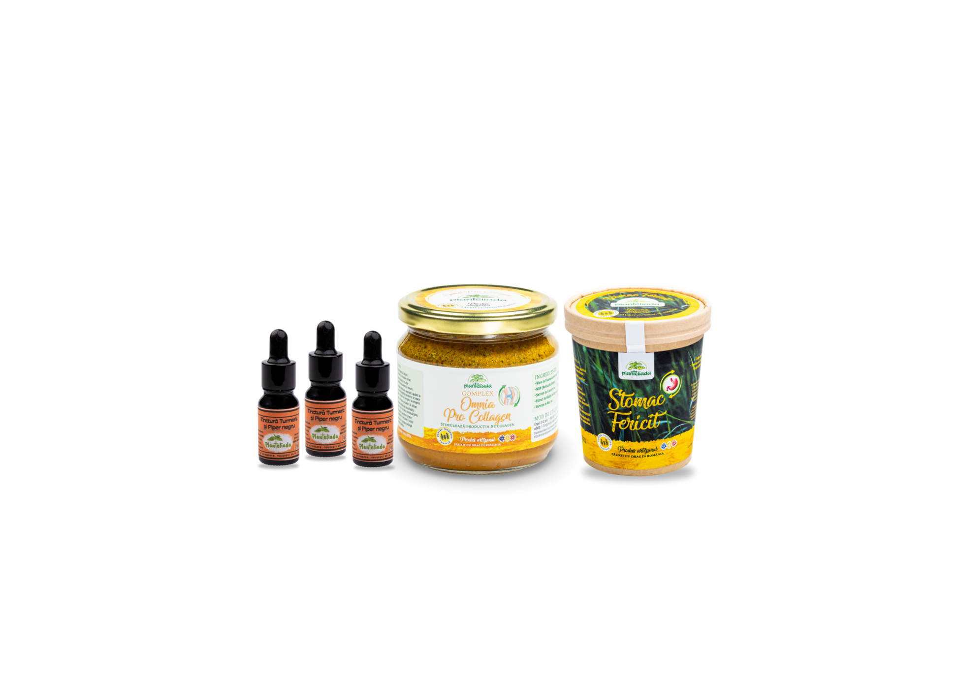 Deoarece prima linie de aparare a organismului nostru este sistemul digestiv, va recomandam cu caldura, o detoxifiere, astfel incat, nutrientii din tinctura de Turmeric si Piper negru, alaturi de aceia din complexul Omnia pro Collagen, sa aiba parte de o asimilare optima.